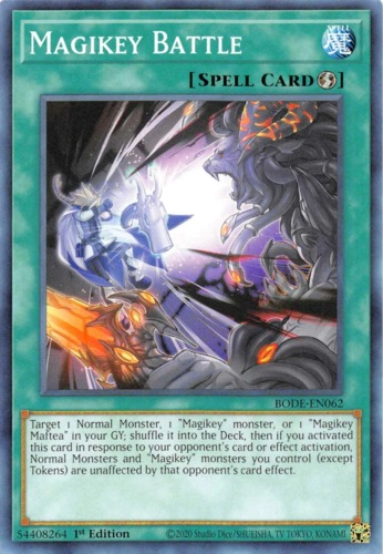 Target 1 Normal Monster, 1 “Magikey” monster, or 1 “Magikey Maftea” in your GY; shuffle it into the Deck, then if you activated this card in response to your opponent’s card or effect activation, Normal Monsters and “Magikey” monsters you control (except Tokens) are unaffected by that opponent’s card effect.