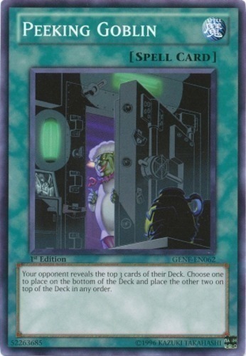 Your opponent reveals the top 3 cards of their Deck. Choose one to place on the bottom of the Deck and place the other two on top of the Deck in any order.